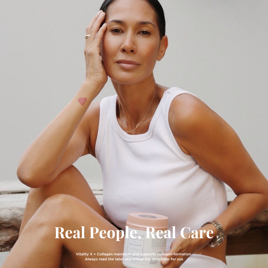 Vitality X + Collagen is our signature inner beauty powder. This blend harnesses the benefits of sustainably sourced Marine Hydrolysed Collagen along with a carefully selected combination of ingredients including vitamins, botanicals and herbs. It supports skin health, maintains energy production and vitality, plus relieves digestive discomfort – in one delicious formula.