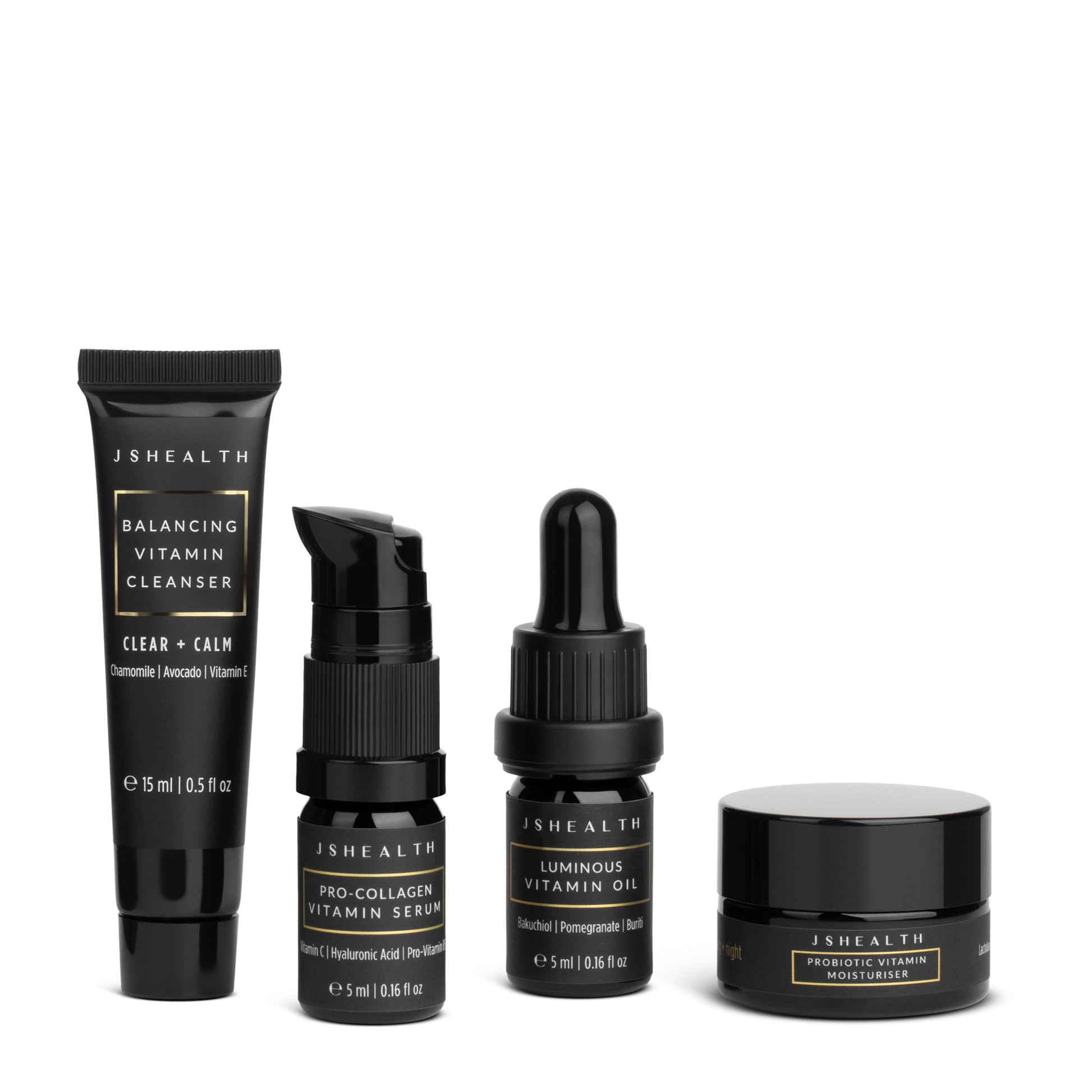 • Contains mini-sized Balancing Vitamin Cleanser 15ml, Pro-Collagen Vitamin Serum 5ml, Luminous Vitamin Oil 5ml and Probiotic Vitamin Moisturiser 10ml