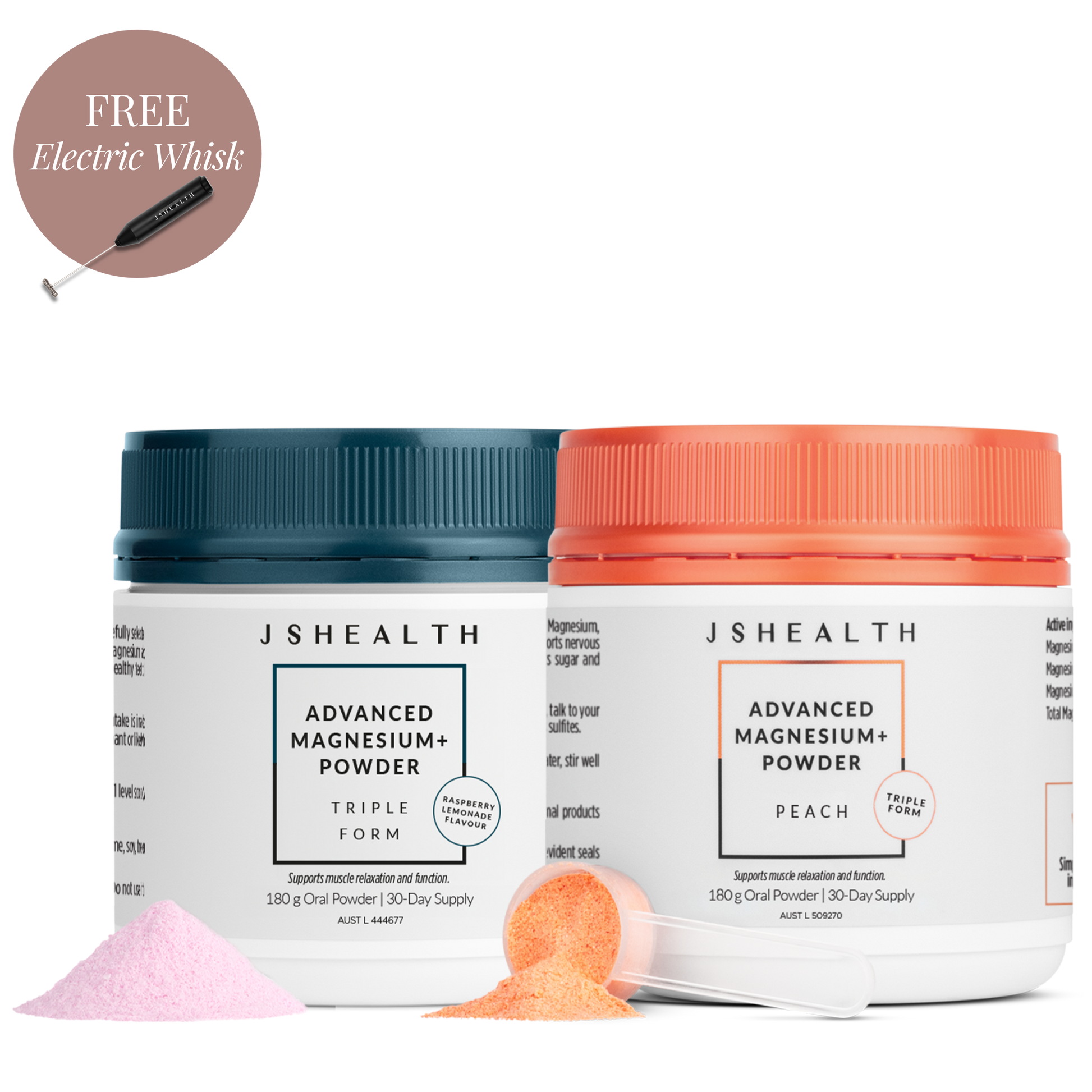 Experience your ritual both ways — two delicious flavours of drinkable triple-form Magnesium + FREE Whisk!
