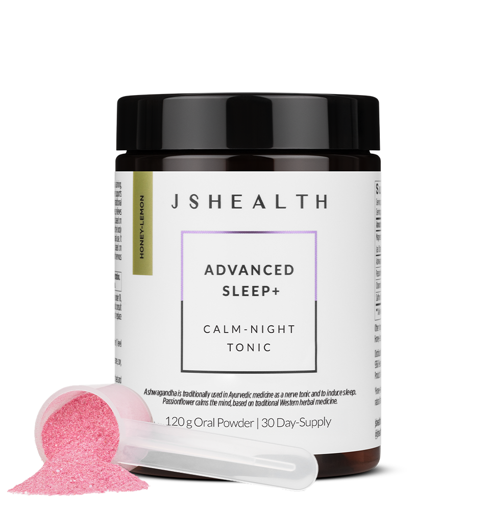 The JSHealth Advanced Sleep+ formula contains Passionflower, Ashwagandha, Magnesium, Chamomile and Saffron in a honey-lemon flavoured powder.