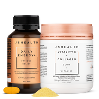 VITALITY X + COLLAGEN: Our signature inner beauty powder combines carefully selected ingredients along with Marine Hydrolysed Collagen. Supports skin health and vitality all-in-one.