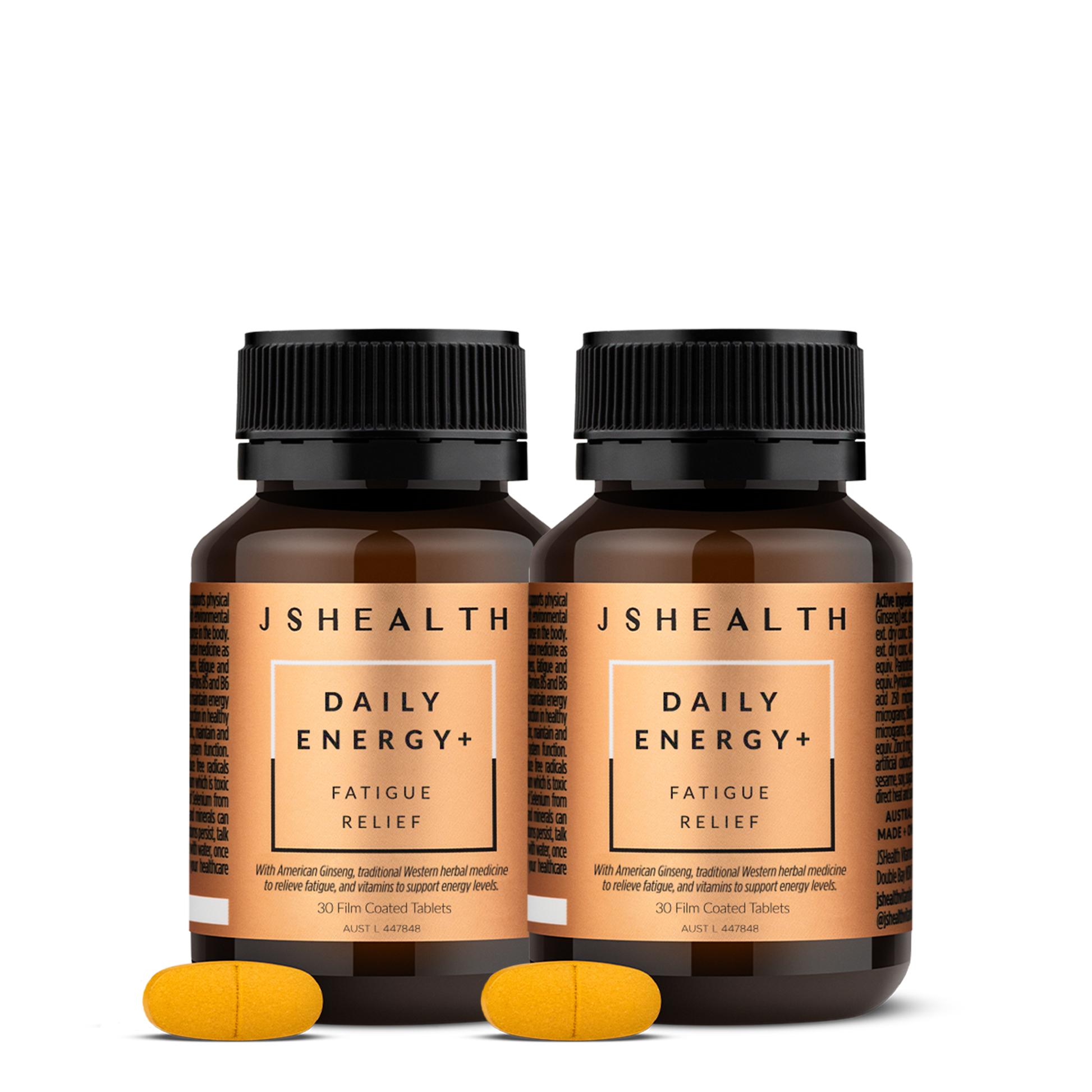 The JSHealth Daily Energy+ formula contains American Ginseng, Rhodiola, B Vitamins, Vitamin C and Zinc, along with other nutrients.