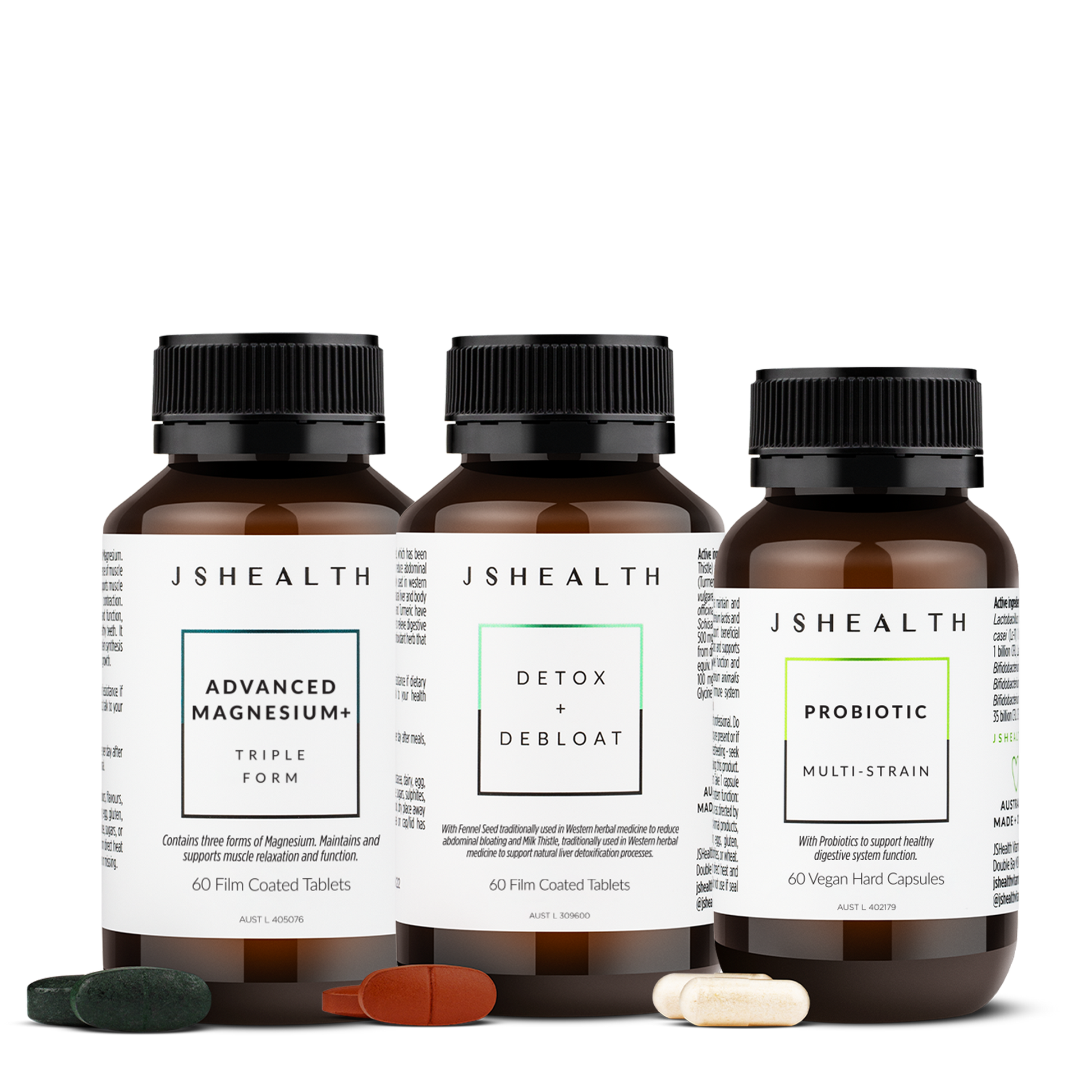 Nourish from within using our gut-loving formulas for a confident, comfortable you. Our Gut Lovers Trusted Trio contains the Detox + Debloat, Probiotic+ and Advanced Magnesium+ formulas.
