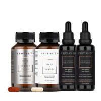 Hair + Energy For Men is built on the same best-selling base formula as our Hair + Energy supplement, now specifically enhanced for male wellness with additional ingredients. It contains our signature JSHealth Kelp™ blend (a complex of two kelp species containing Iodine) to support hair growth and health and specifically-dosed Zinc to support testosterone levels and hair thickness. Additionally, Hair + Energy For Men also contains Siberian Ginseng to support stamina, physical endurance and energy levels, plus Ginkgo to support healthy blood circulation.