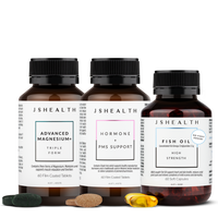 Find balance throughout the month using our trio. Our Harmony Trusted Trio contains the Hormone + PMS, Fish Oil (60s) and Advanced Magnesium+ formulas.