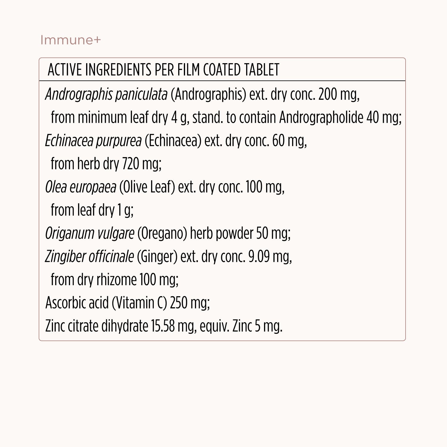 The JSHealth Immune+ formula contains Andrographis, Zinc, Echinacea and Olive Leaf.