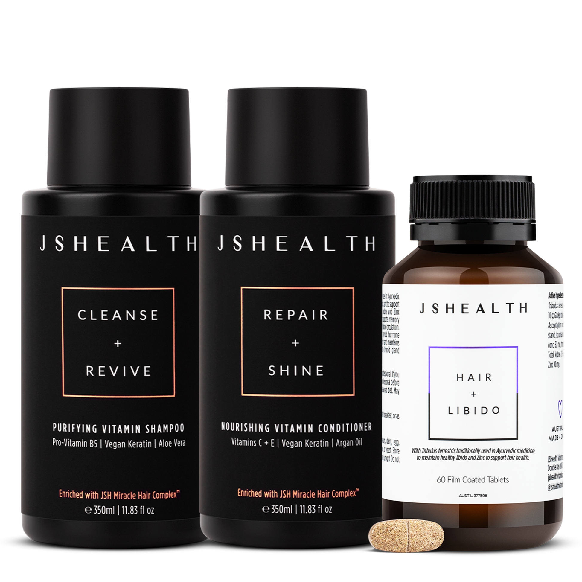 HAIR + LIBIDO: Our ingestible hair formula for those who want support in the bedroom too! It contains Iodine from signature JSHealth Kelp™ and Zinc to support hair growth and health when dietary intake is inadequate. Plus, the addition of the ingredient Tribulus support healthy libido and sexual function, based on traditional Ayurvedic medicine.