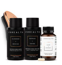 Support your hair journey from inside and out with our best-selling ingestible Hair + Energy formula and natural, topical 2-Step Vitamin Haircare System + FREE brush!