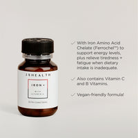 Support your energy and vitality with Iron+. This vegan-friendly formula contains Iron Amino Acid Chelate (Ferrochel™️) along with B Vitamins and Vitamin C.
