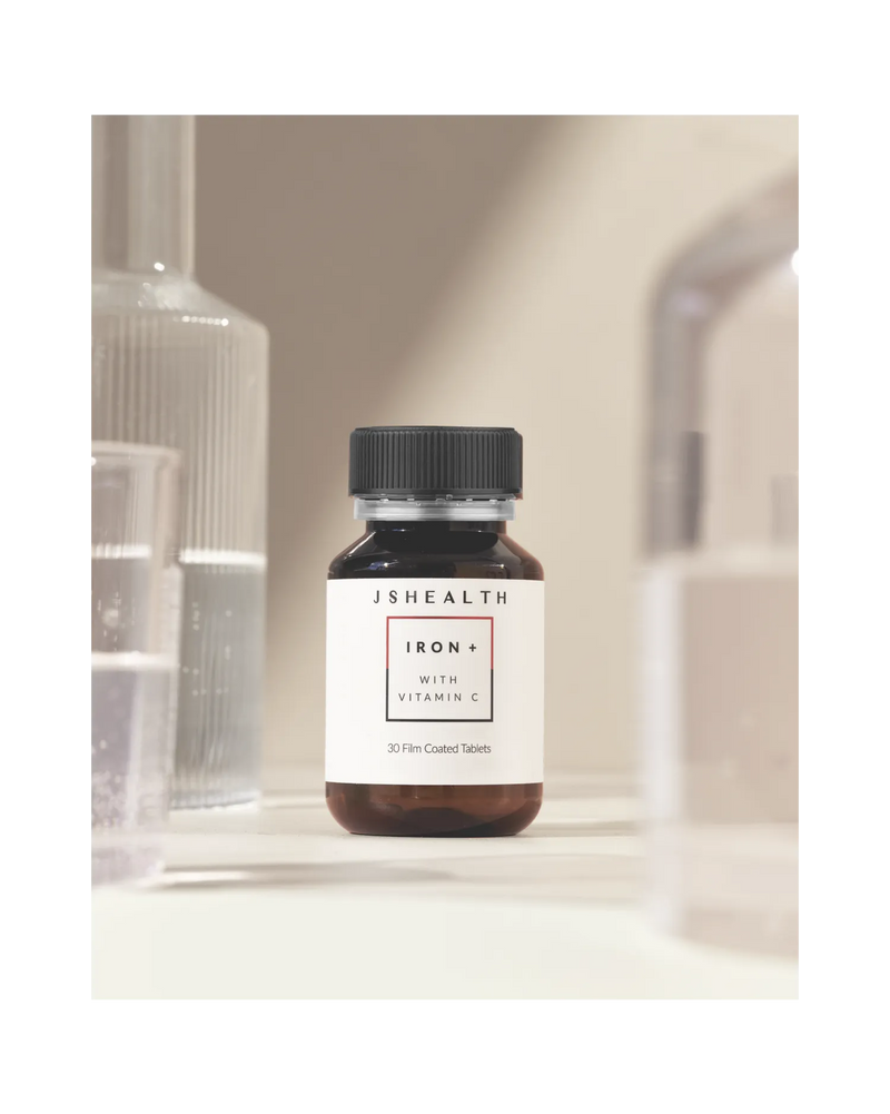 The JSHealth Iron+ formula contains Iron, B Vitamins, Folate and Vitamin C.