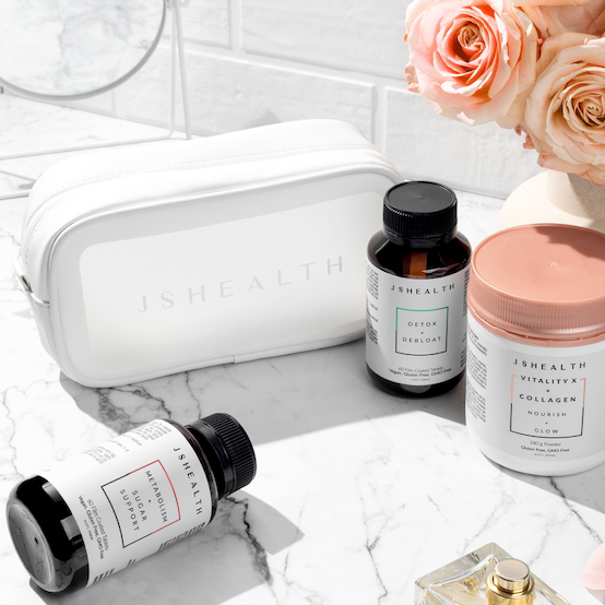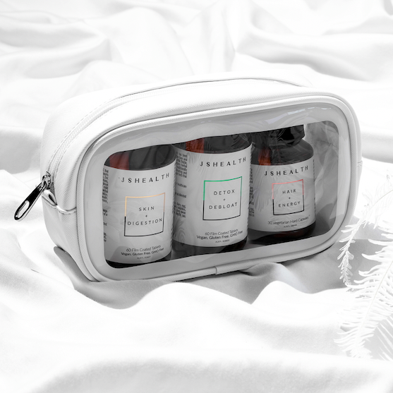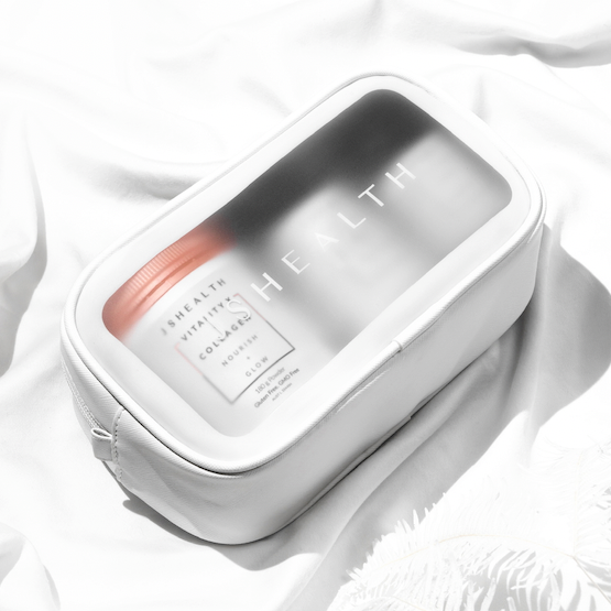 Carry your vitamins with you everywhere you go in our chic and practical signature travel bag. Crafted in the perfect dimensions to house your JSHealth Vitamins bottles, with an easy zip opening and classic logo design front panel, it will become one of your favourite wellness accessories.