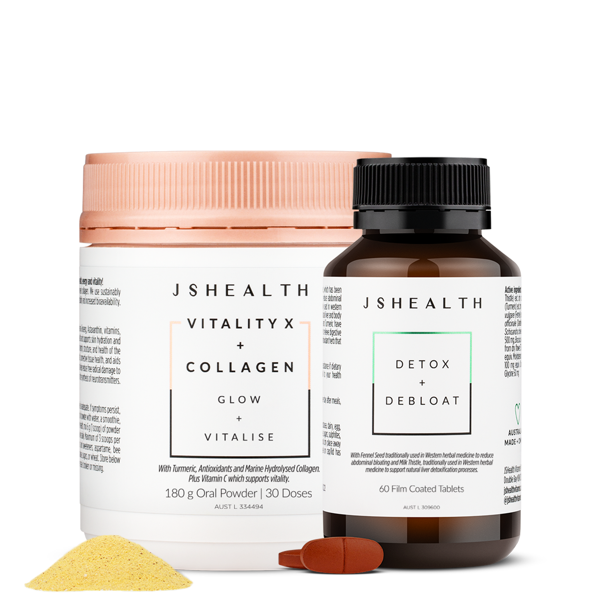 Your pair to support liver health, starring our best-selling Detox + Debloat formula and Vitality X + Collagen powder.