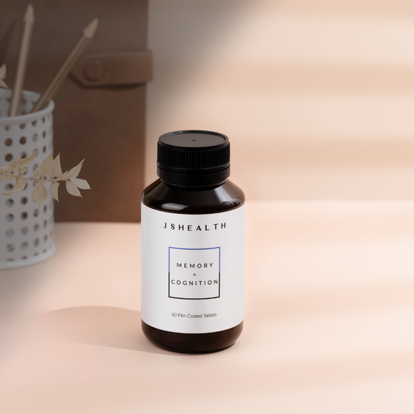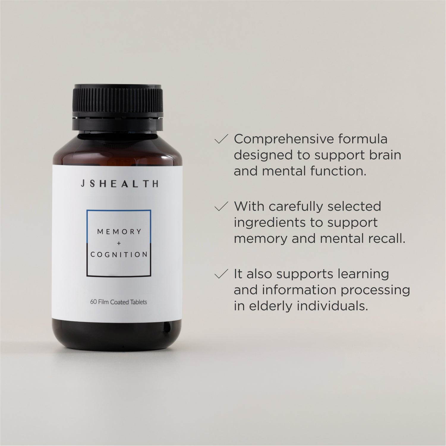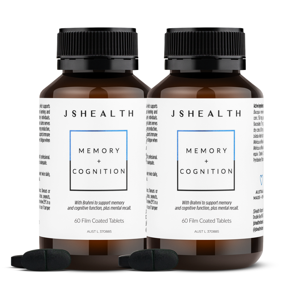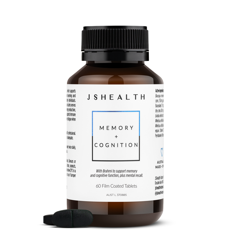 The JSHealth Memory + Cognition formula contains Brahmi, Lemon Balm and Vitamin B6.