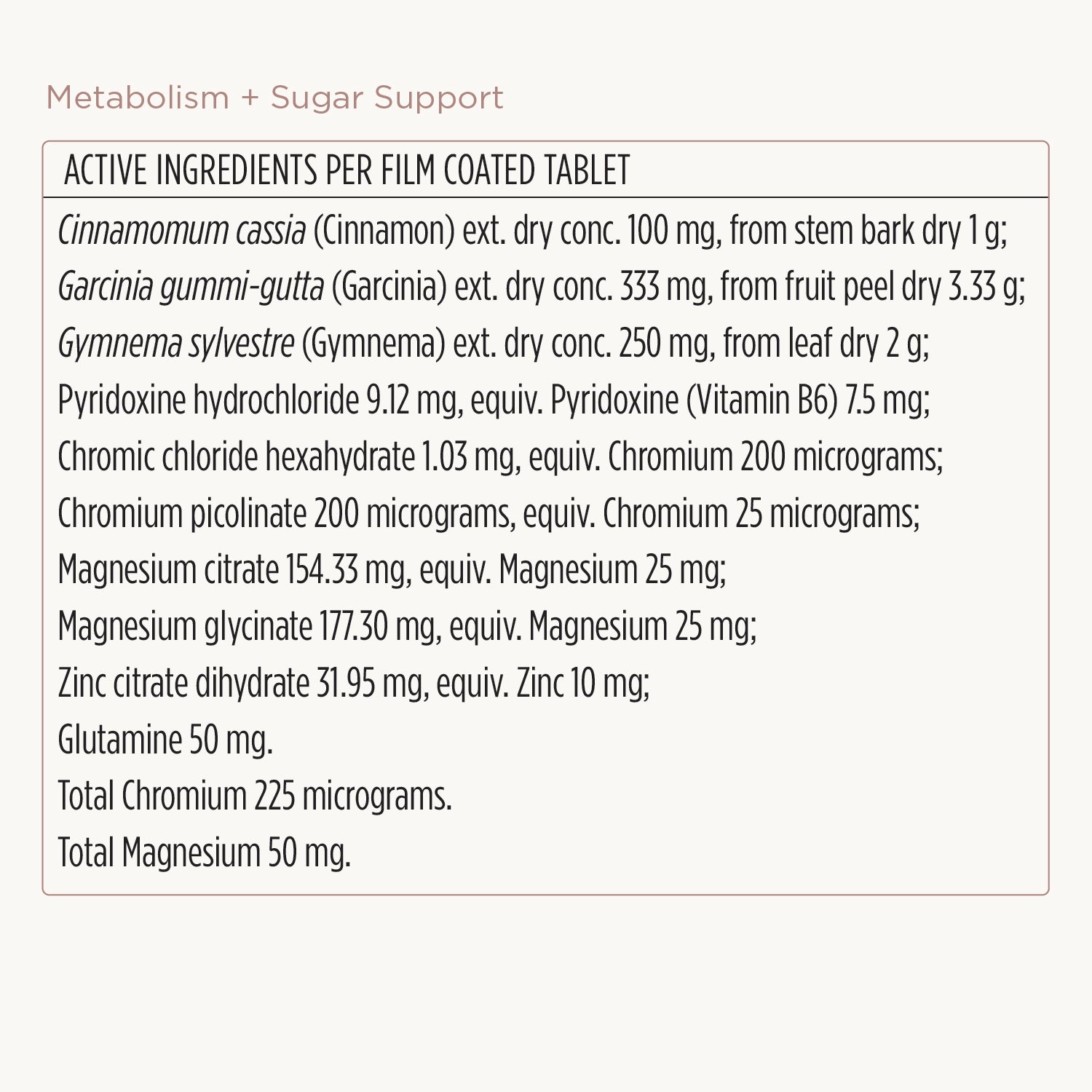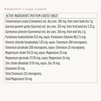 The JSHealth Metabolism + Sugar Support formula contains Chromium, Magnesium, Zinc, Cinnamon and Gymnema.