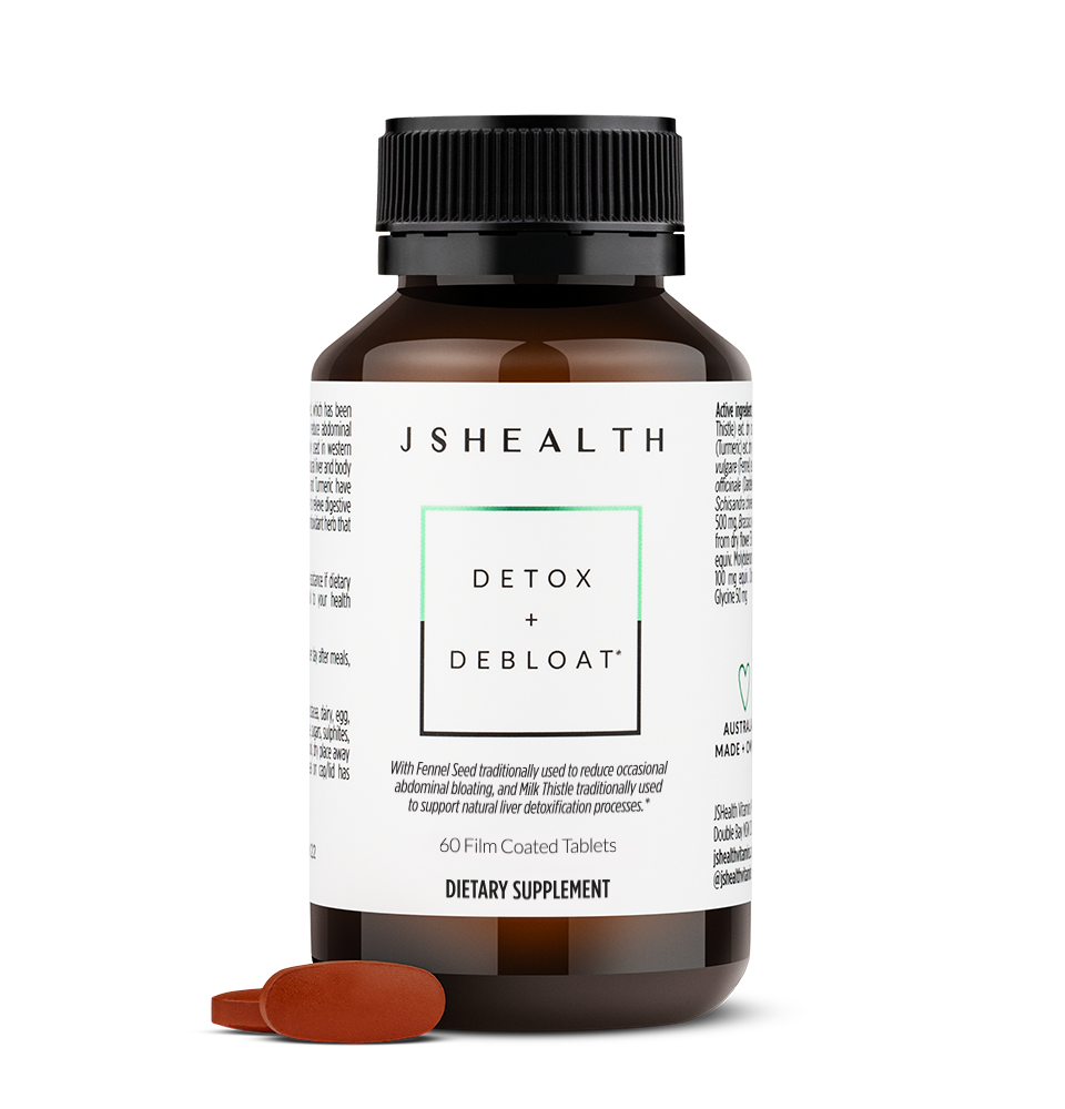 The JSHealth Detox + Debloat formula contains Milk Thistle, Fennel Seed and Turmeric.