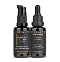 The Pump + Glow Bundle contains the Pro-Collagen Vitamin Serum and Luminous Vitamin Oil designed to deeply hydrate, brighten, plump, firm and illuminate your skin.