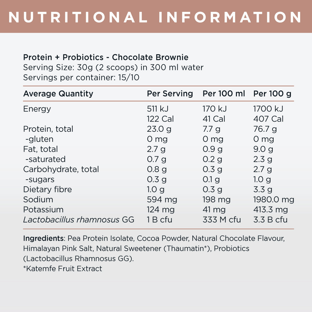 PROTEIN + PROBIOTICS: Our nourishing, high-quality Protein + Probiotics range combines plant protein with the benefits of gut-loving probiotics. These easily digested protein powders feature 20g protein per serving. Enjoy a scoop in your morning smoothie, as a post-workout shake with water, or in your baking goods to add a delicious and versatile boost of protein to your daily routine! Enjoy a variety of delicious flavours, with clean ingredients, free from refined sugars and preservatives.