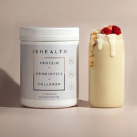 You can simply add 2 scoops (30 g) to at least 300 ml of water or your milk of choice and shake. Alternatively, add the Protein + Probiotics to a smoothie in the morning, after exercise, as a mid-morning/afternoon snack or even as an evening treat. Our advanced formula also blends beautifully into recipes. You can cook or bake with our Protein + Probiotics without having to worry about the protein being denatured, however, please note high heat can easily impact the probiotics in the powders.