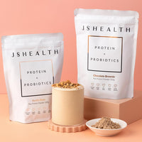 NEW IMPROVED FORMULA! We listened to your feedback and are excited to share our reformulated Protein + Probiotics blend. With a balanced flavour profile that's not too sweet, and bursting with the nourishing protein and probiotics that you love.
