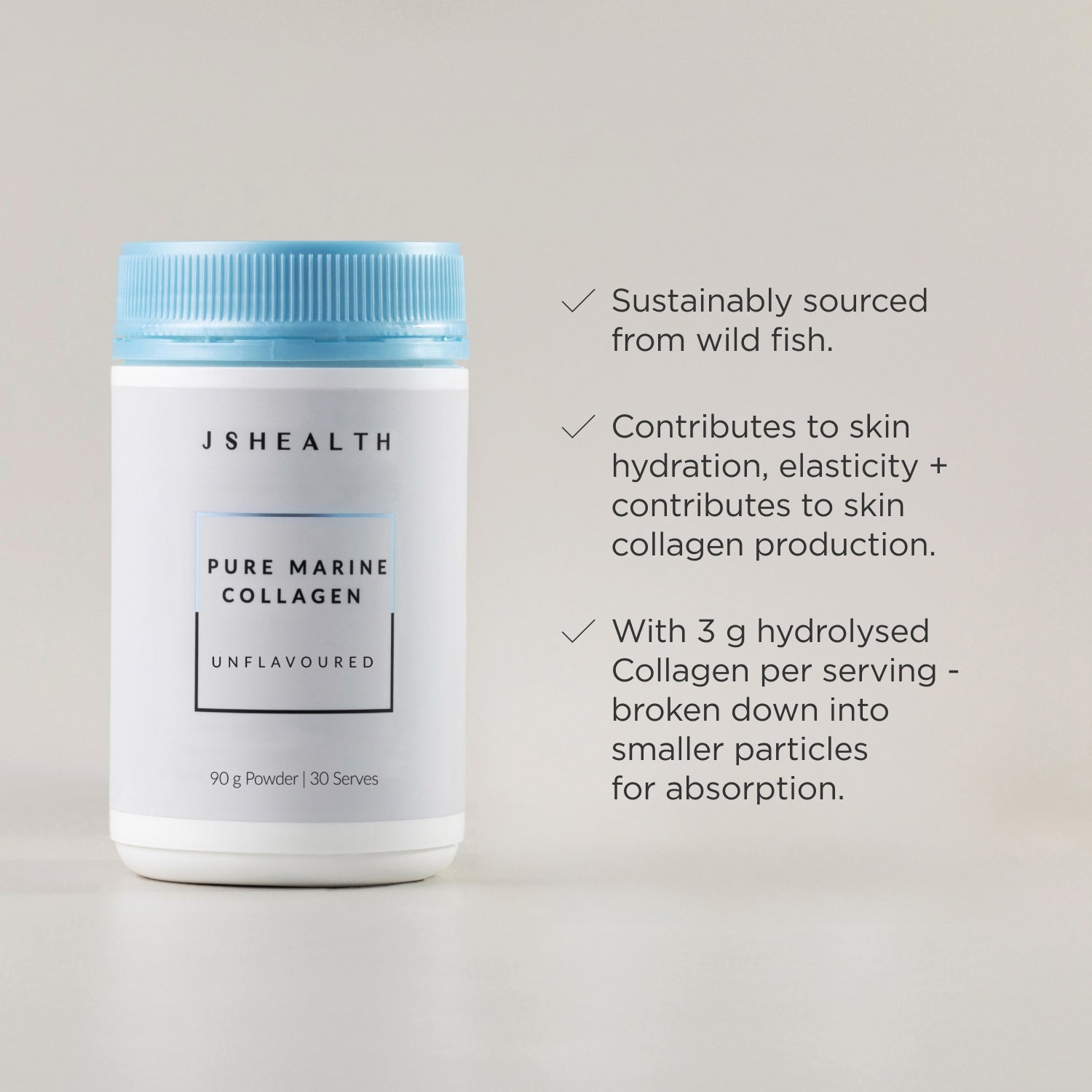The JSHealth Pure Marine Collagen formula contains hydrolysed Marine Collagen.