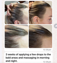- Balding areas - Apply a few drops to areas of concern, twice daily, morning and evening. Massage in and do not rinse out. Can be applied when hair is wet or dry.