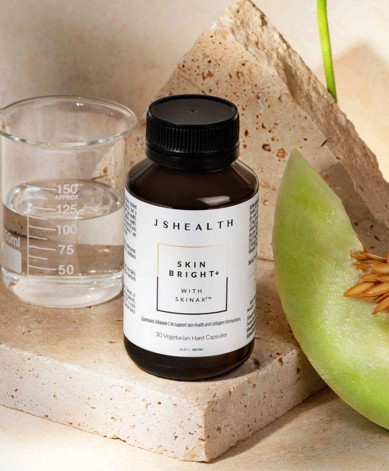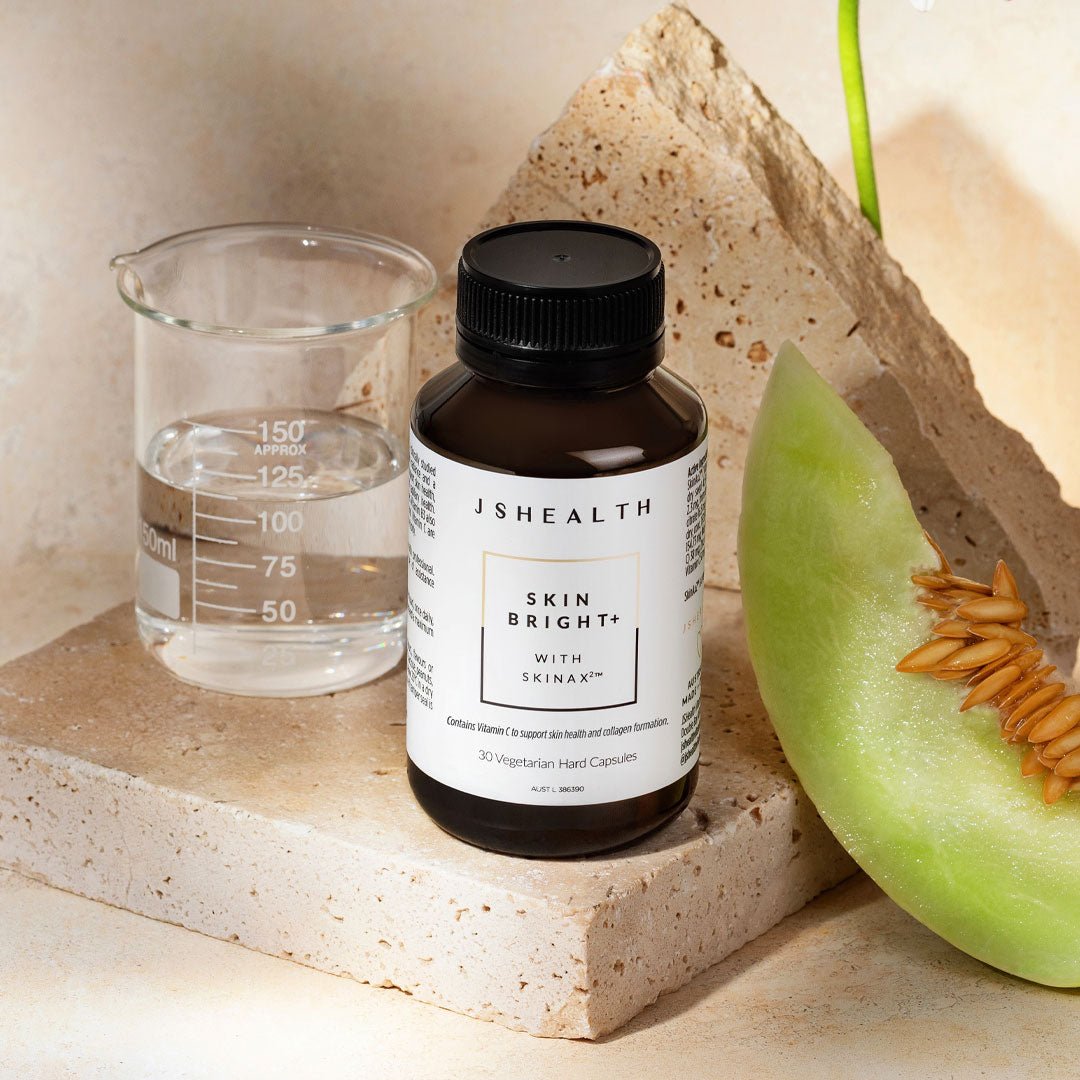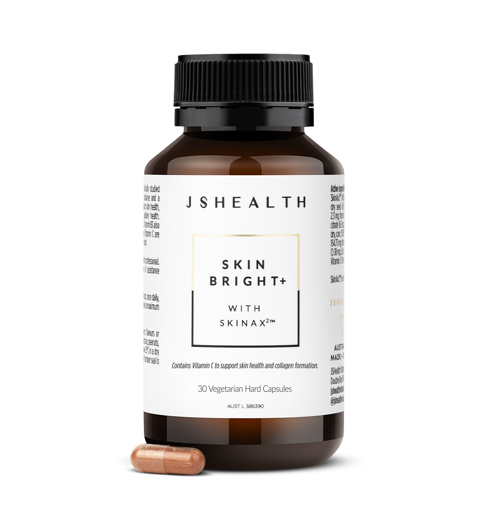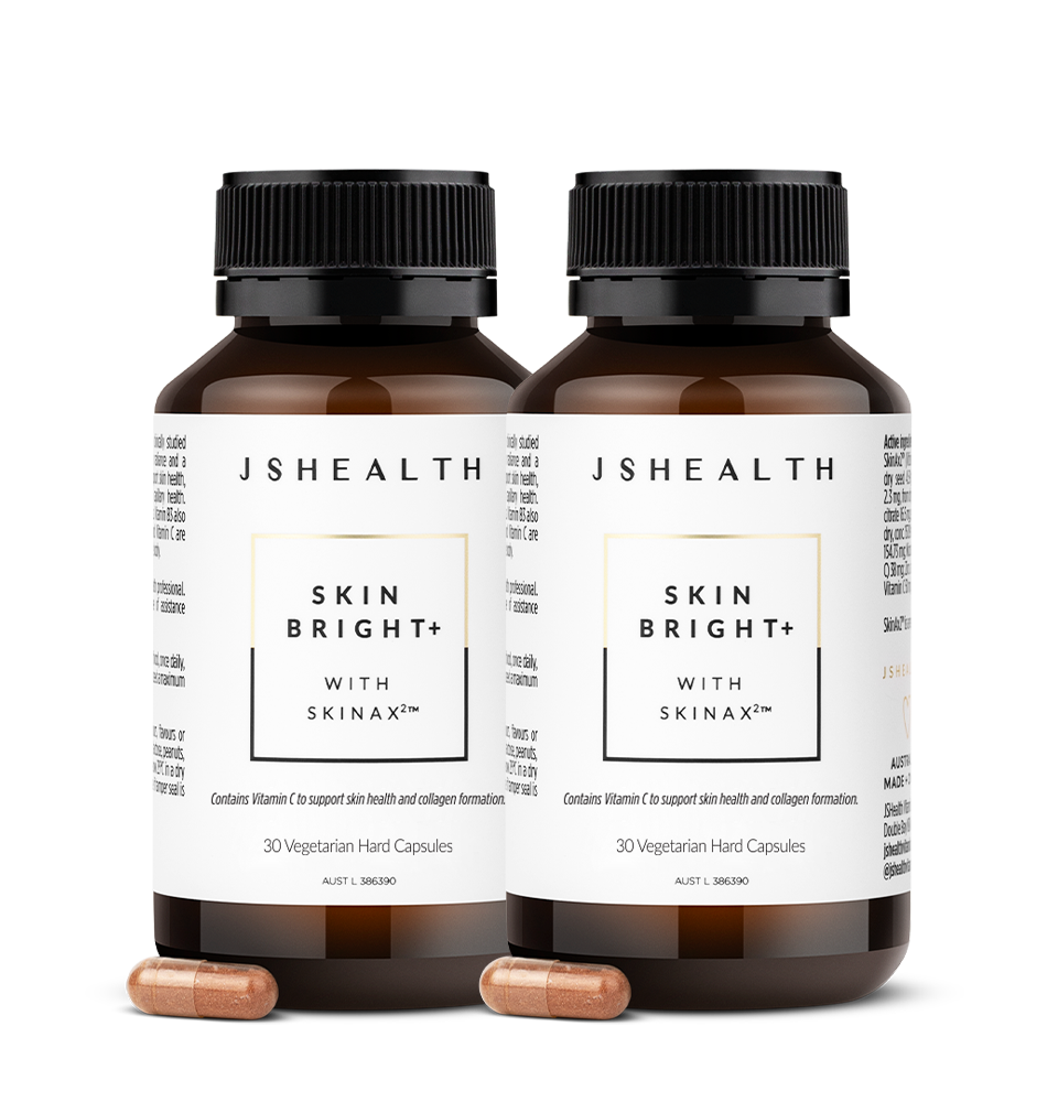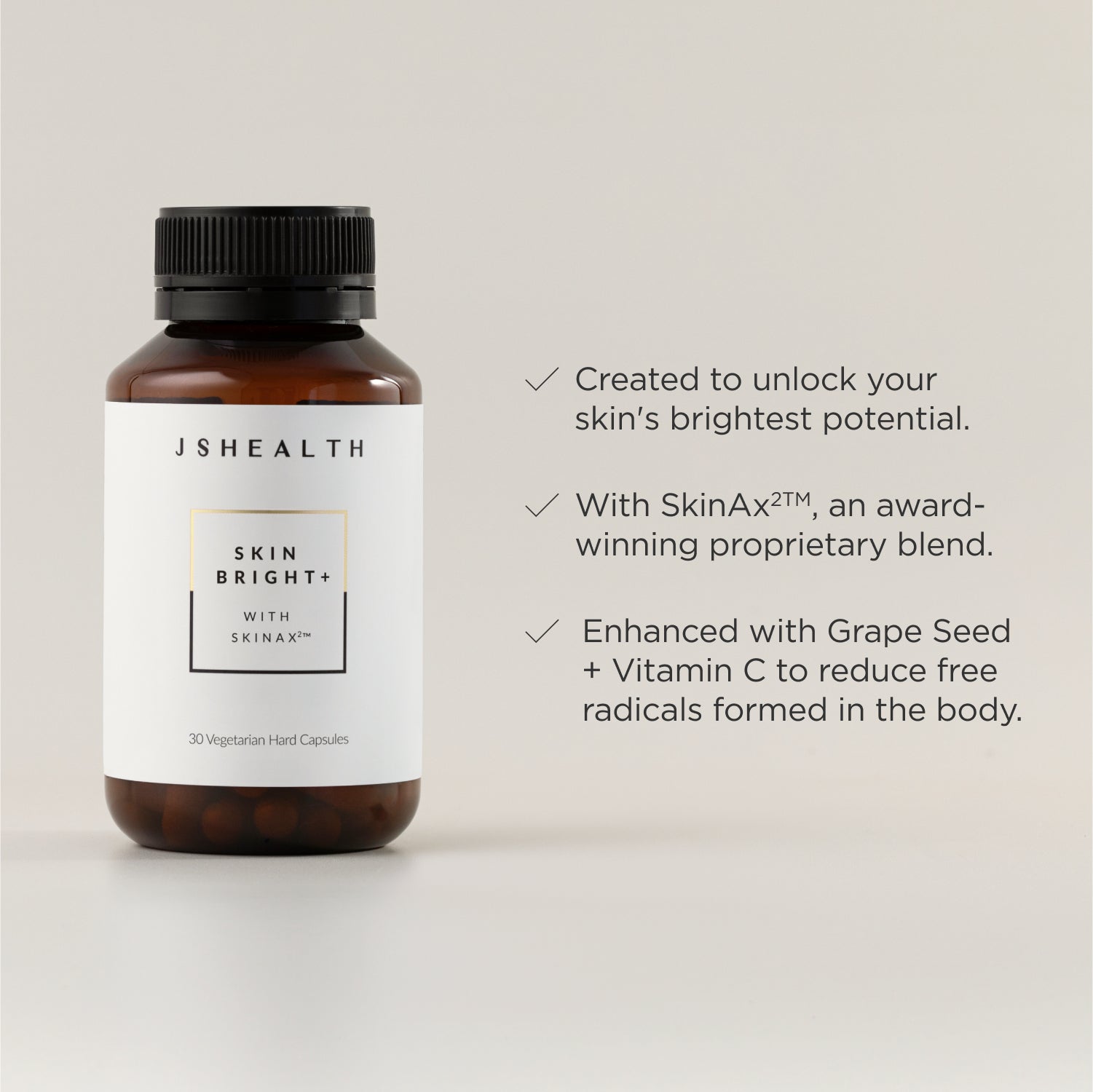 The JSHealth Skin Bright+ formula contains SkinAx2™, Vitamin C, Zinc and Nicotinamide.