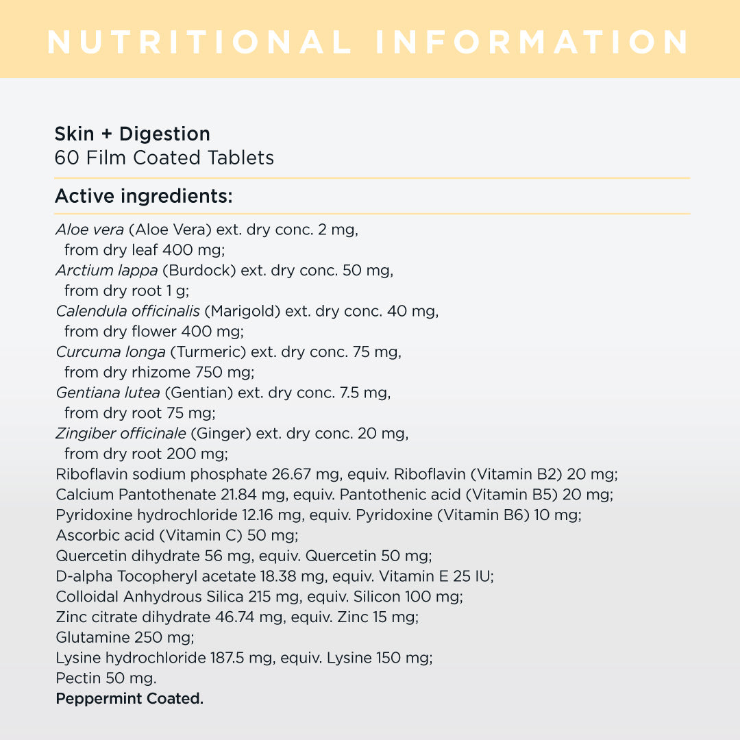Inspired by the gut/skin connection, this comprehensive formula is designed to focus on both, with a double benefit approach to skin health. It works to relieve the symptoms of acne, pimples and more. Simultaneously it relieves digestive discomfort, based on traditional Western herbal medicine, and supports gastrointestinal system health.