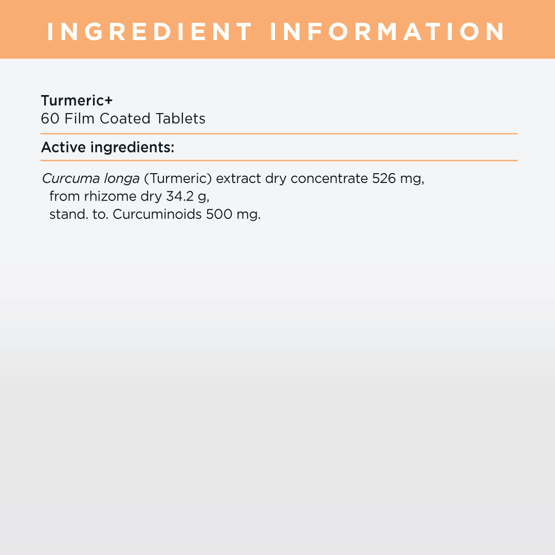 The Turmeric+ formula contains standardised Curcumin C3 Complex.