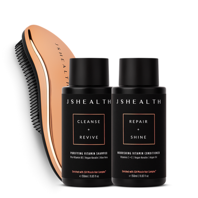 This formula is elevated with the signature JSH Miracle Hair Complex™, containing 7 science-backed vitamins, nutrients and botanicals for a healthy scalp and silky, smooth, vital hair. Our bespoke blend infuses a carefully curated combination of Vegan Keratin, Pro-Vitamin B5, Vitamin C, Calendula, Avocado Oil, Vitamin E and Frankincense.